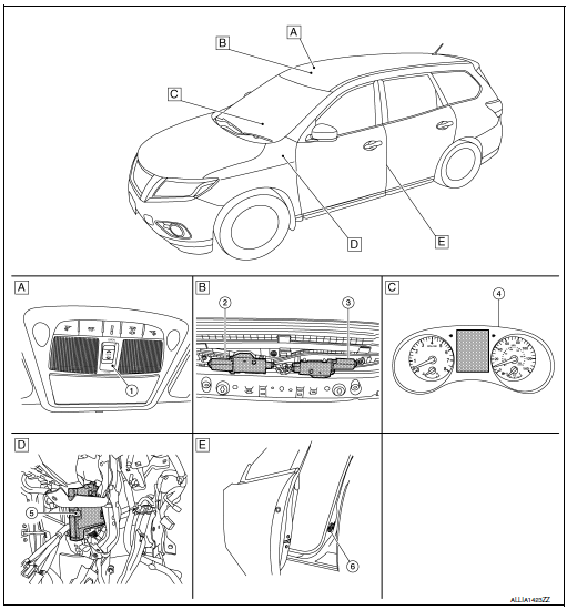 | 3 | Moonroof motor | The moonroof motor and CPU are integrated into one unit that opens/closes by input from the moonroof switch operation. |