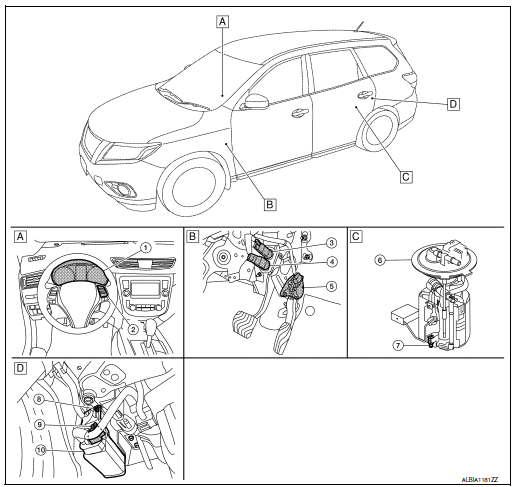 | 6 | Fuel level sensor unit and fuel pump | EC-20, "Fuel Level Sensor Unit and Fuel Pump" | |