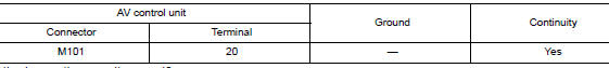 Is the inspection result normal? YES >> Replace the AV control unit. Refer to AV-209, "Removal and Installation".