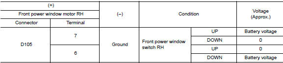 Check front power window motor RH operation with main power window and door lock/unlock switch or front power window switch RH.