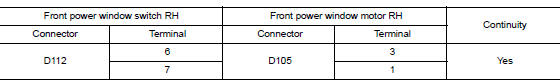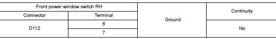 Is the inspection result normal? YES >> Replace front power window switch RH. Refer to PWC-65, "Removal and Installation".