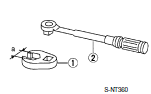 | 1. Flare nut crowfoot 2. Torque wrench |