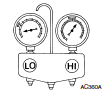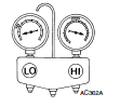 Diagnose using a manifold gauge whenever system’s high and/or low side pressure(s) is/are unusual. The marker above the gauge scale in the following tables indicates the standard (usual) pressure range. Refer to above table (Ambient air temperature-to-operating pressure table) since the standard (usual) pressure, however, differs from vehicle to vehicle.