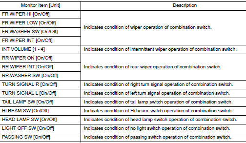 BCM judges the wiper intermittent dial 1 - 4 by the status of INT VOLUME 1, 2, and 3 switches.